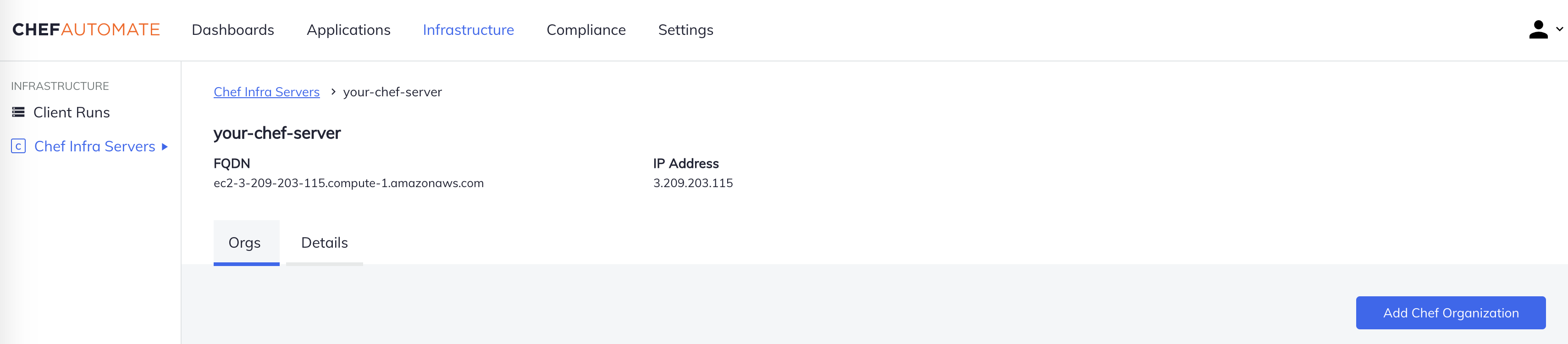 Add Chef-Server Details, select the Add Chef Infra Server Button.